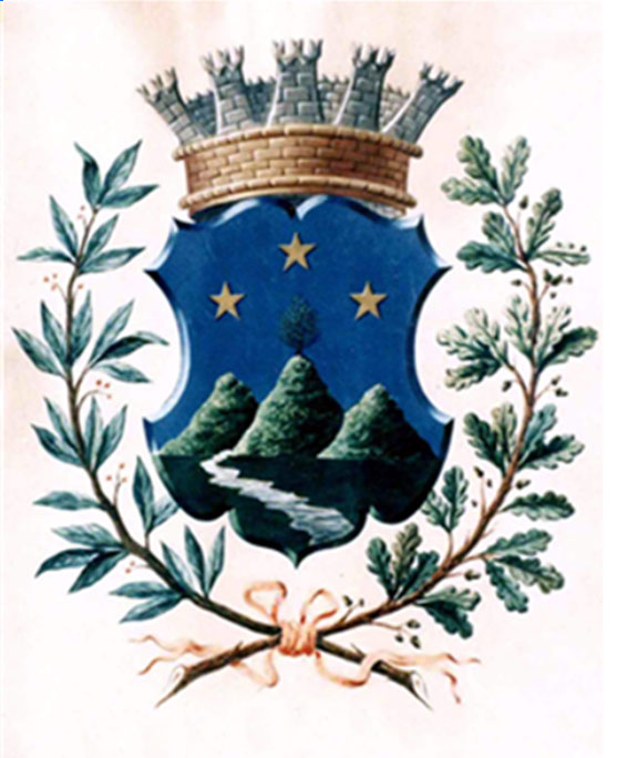 Lo scudo è sormontato da corona di terzo ordine spettante ai comuni che non hanno più di 3000 abitanti ed ornato da due rami, il primo di alloro ed il secondo di quercia, allacciati sotto la punta dello scudo”