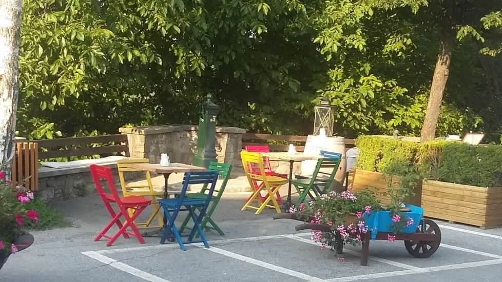 Nella bella stagione una simpatica terrazza permette di pranzare all'aperto, di fermarsi a gustare un gelato artigianale, un aperitivo o una cena a lume di candela inebriati da profumi e sapori di Langa.